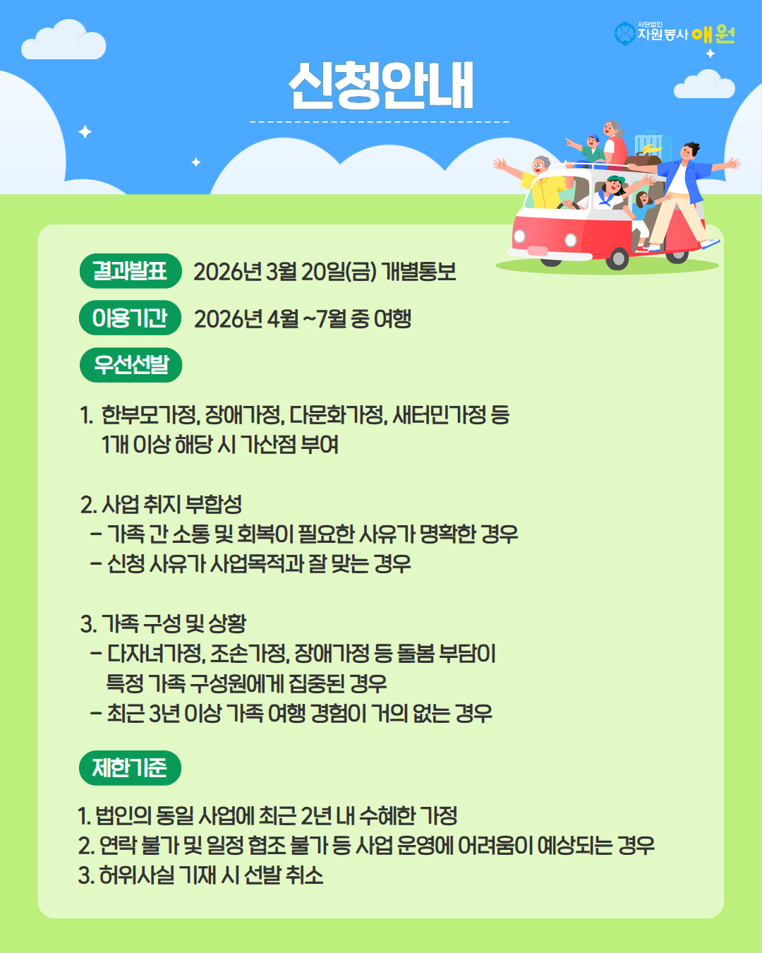 2026 가족온溫 여행지원사업 신청안내(1차)